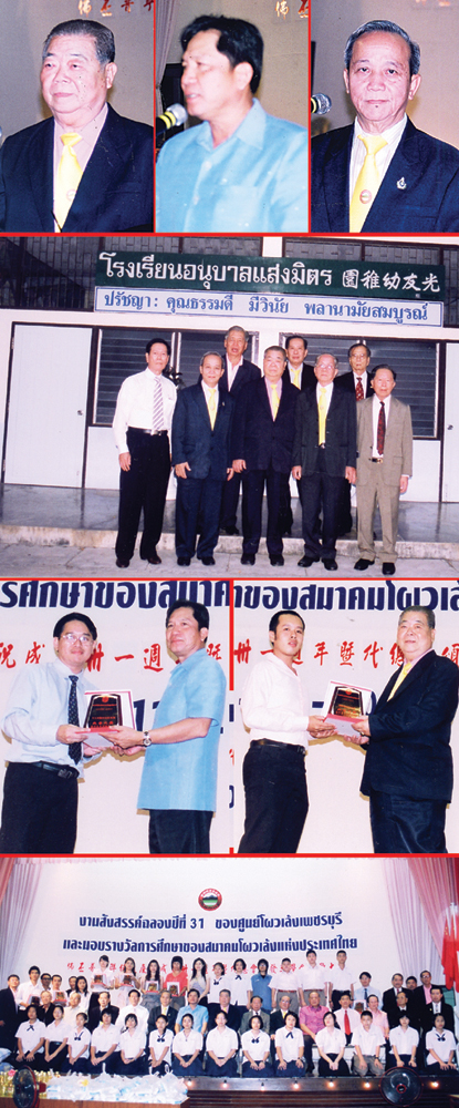 旅暹普宁同乡会佛丕联络处庆祝成立卅一周年联欢晚会暨代总会颁发会员子女奖助学金,于十一月七日晚假该府华侨公会大礼堂隆重举行。筵开六十多席,场面热烈,其况殊盛。 出席当晚庆祝联欢晚会者,除佛丕府广大普宁乡亲和获奖的会员子女外,应邀的贵宾有佛丕府尹猜.帕匿鹏攀、佛丕直辖市长王育、佛丕检察官刘农那隆,碧奔报编辑詹炳辉、七侨团联合机构主席韩瑞敦、副主席周锡荣、刘庚有、许镇宽、光中公学中文校长周巧云女士、泰文校长杨俊梅小姐、光友幼稚园校长郑如苹女士等,还有当地各侨团、各宗亲会的首长或代表及社会贤达。 曼谷总会应邀参加者有:理事长李振钦、常务理事兼组织股主任许瑜、常务理事兼副主任陈厚煌、常务理事兼文教股顾问吴佳乐、常务理事兼福利股副主任陈仁杰、常务理事李楚雄、总干事李坤。 曼谷总会李振钦理事长一行于下午五时许抵达佛丕府,即由许佑国主任和光中公学校友会许镇宽主席陪同下往参观访问光中公学附设的占地十莱拥有幼稚学生一千多人的光友幼稚园,获该校校长和教职工们的热烈欢迎。李振钦理事长热心教育特赞助该幼稚园经费二万铢,义举可风。 六时多,李振钦理事长等一行抵达会场,即获该联络处全体理事乡亲的热烈欢迎,互相问好并引导至贵宾席入座。 七时,联欢晚会开始,首由许佑国主任致词,许主任在致词中,对佛丕府尹等诸位长官和各侨团首长暨曼谷总会李振钦理事长一行的光临,会员乡亲们的踊跃参加,为联欢晚会增光添彩,表示热烈欢迎和万二分感谢。并简介佛丕联络处概况,该联络处在总会领导下,当地各侨团帮助下全体理事和会员乡亲的支持努力下,会务不断向发展……。 词毕,光中公学学生表演祝福舞,向长官们首长们和乡亲们祝福。 接着,佛丕府尹猜.帕匿鹏攀阁下和佛丕七侨团联合机构韩瑞敦主席先后应邀致词,语多祝贺,赞美佛丕普宁乡亲对社会福利事业和佛丕的繁荣进步作出的卓越贡献,赞美旅暹普宁同乡会重视教育,年年颁发会员子女奖助学金,关心会员子女的学业和进步……。 最后,李振钦理事长应邀致词:今天是普会佛丕联络处庆祝成立卅一周年并代总会颁发会员子女奖助学金。本人有机会和同事们应邀出席,与佛丕府普宁乡亲们见面,欢聚一堂,深感荣幸欢欣,首先谨代表总会向诸位嘉宾和乡亲们问好,并致以崇高谢意。还盛赞佛丕联络处乡亲们团结融洽,会务活跃,与当地各侨团紧密合作,开展社会福利事业,成绩卓越,向来对总会各项会务都是大力支持,积极参与,特代表总会致谢。并祝福今后会务更加蓬勃发展,再创辉煌。 李理事长词毕,与诸位长官、侨团首长和常务理事共同主持颁发奖学金,获奖者共五十六名,其中获奖荣誉盾者九名。在颁发奖学金之前,许佑国主任代表联络处接总会和李振钦理事长各赞助一万铢。 颁发奖学金毕,获奖学生们与诸位长官和侨团首长合影留念后,即举行开幸运奖。今年幸运奖品丰富且都高贵实用,幸运者皆大欢喜。庆祝联欢晚会自始至终充满愉悦气氛,直至晚九时多方圆满完成。