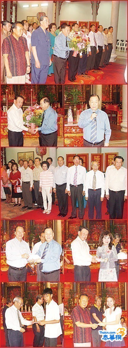 虎过关山添活力;兔攀月桂浴春晖。二月十七日晚,祥瑞的金兔年首个望月之夜,泰国郑氏宗亲总会在郑氏大宗祠荥阳堂隆重举行元宵谒祖暨新春团拜活动。会长委员会主席郑钦杰,理事长郑钦达联合主持仪式,会长委员会暨理事会领导,会员宗亲及眷属近二百人参加活动,欢聚一堂共庆佳节,迎春纳福,宗亲们互相拜年,该会并赠送每位参加团拜仪式之宗亲大吉一对,象征新年好头彩,大吉大利。出席元宵谒祖暨新春团拜活动者计有:会长委员会主席郑钦杰,会长郑翼飞,副会长郑楷南,委员郑汉生,秘书郑膺年,理事长郑钦达,副理事长郑裕益,郑伟昌,郑惠中,郑培才,郑定沛,郑暹国,郑增利,常务理事郑马素芳,郑海民,郑志明,郑才松,郑志澄,理事郑维浩,郑惠安,郑镇江,郑炳坤及会员宗亲等。仪式于晚七时半举行,全体宗亲于荥阳堂举行谒祖仪式,会长委员会主席郑钦杰敬献鲜花,领导全体宗亲敬向列祖列宗神位行三鞠躬礼,藉表缅怀祖德,慎终追远。谒祖礼毕,举行新春团拜仪式,郑钦达理事长代表理事会敬向会长委员会主席郑钦杰献花贺年,表达敬意,感谢会长委员会对总会会务工作的指导和支持。会长委员会主席郑钦杰向与会宗亲致新春贺词:尊敬的会长会各位会长,副会长,委员,尊敬的理事长家钦达宗长,各位副理事长,常务理事及理事,各位宗亲,新正如意。今天是中华的传统节日元宵佳节,本会今晚举行谒祖暨宗亲团拜仪式,非常高兴看到各位宗亲莅临参加团拜活动,互相拜年,祝福新春,场面热闹,体现出郑氏一家亲。在这个美好吉祥时刻,我谨代表泰国郑氏宗亲总会会长委员会向理事长家钦达宗长暨全体理事会首长,各位会员宗亲拜年,敬祝各位身体健康,家庭幸福,事业进步,吉祥如意,谢谢。正月十五闹元宵,火树银花庆佳节。郑氏总会元宵谒祖暨新春团拜活动内容丰富,该会备办糖狮糖塔予理事会员宗亲订请,纳福迎祥,同时举行抽奖活动,该会提供的奖品红包,及会长委员会,理事会领导乐助的奖品繁多,令参加活动之会员宗亲在喜庆热闹之余,幸运中彩,有所收获,皆大欢喜。仪式至晚九时圆满结束。