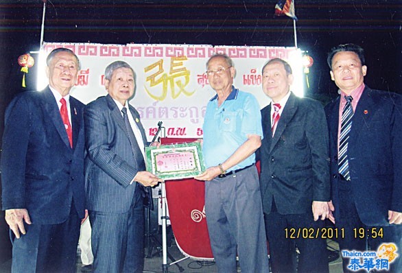位于海滨的龙仔厝张氏宗亲会,由理事长张松财发来邀请函,敬邀泰国张氏宗亲总会理事长张盛财,及诸首长大驾,于本月12日(正月初10日)晚,光临龙府,出席该会庆祝辛卯年新春而隆重举办的龙仔厝府张氏宗亲会员新春聚餐联欢晚会,假座于荣誉理事长张松来的豪华府邸大院。 张总张盛财理事长自掌张总大印以来,年年应邀出席今年新春,金兔带来好运,与永远名誉理事长张炳华,名誉理事长张国都,副理事长张炼鸿、张建伟、总干事张声平等10人,联袂乘橱车赴会。于抵达时,受到龙府张松财理事长,张松来荣誉理事长,副理事长张沙愚,张阿江、张汉光、张义宝、张孔荣、张义八、张松荣、张塞猜、及诸理事宗亲的热烈欢迎和接待,安排在前排贵宾席就座。 联欢会筵开30余席,尚有夜功府张氏宗亲会张愈贵理事长也应邀率诸理事莅临出席,有该会名誉理事长张旭宜,理事长张顺兴、张天龙、张文池、张亚丰、张炳祥、张宝存、张家祥等,同为座上嘉宾。张松财理事长致欢迎词,向莅临出席的数百位贵宾和宗亲表示热烈欢迎并致新春的美好祝颂,他表示,特别高兴总会张盛财理事长亲率诸首长莅临指导,尤为春宴增光,夜功府张愈贵理事长等宗长也带来夜功宗亲的深厚情谊,倍增温馨,值此新春之际,恭祝全体宗亲和贵宾新春纳福,兔年吉祥,身体壮健,福寿绵长! 张总张盛财理事长致贺词,他说,非常高兴今夜有机会应邀出席龙府宗亲的新春联欢盛会,这几年我们年年前来参加,并代表总会全体理事向龙府宗亲表示祝福和问候。看到出席的宗亲们一年比一年多,会务一年比一年兴旺,感到非常欢喜。他并欢迎龙府宗亲于本月廿七日晚莅谷出席张总新春联欢晚会,畅叙宗谊,共渡良宵。 名誉理事长张国都也登台致谢东道的盛情款待。为褒扬龙府张氏宗亲会张松来名誉理事长对总会的支持和赞助之贡献,张总决定敦请张松来宗长为总会荣誉理事长特备请任书,由张盛财理事长颁发,由张松来荣誉理事长令胞弟张松和宗长代为接领。张松来荣誉理事长客岁赞助总会10万铢,今年初又再赞助10万铢作为奖学基金,殊堪褒扬。 当晚的歌舞助兴节目丰富多彩,全由宗亲们自唱,并有很多幸运奖品供抽奖。至深宵圆满结束,张总诸首长辞别赋归。